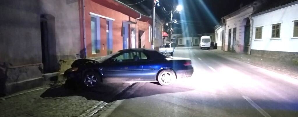 O șoferiță neatentă a pierdut controlul volanului și a intrat în zidul unui imobil situat pe strada Avram Iancu din Dumbărveni.