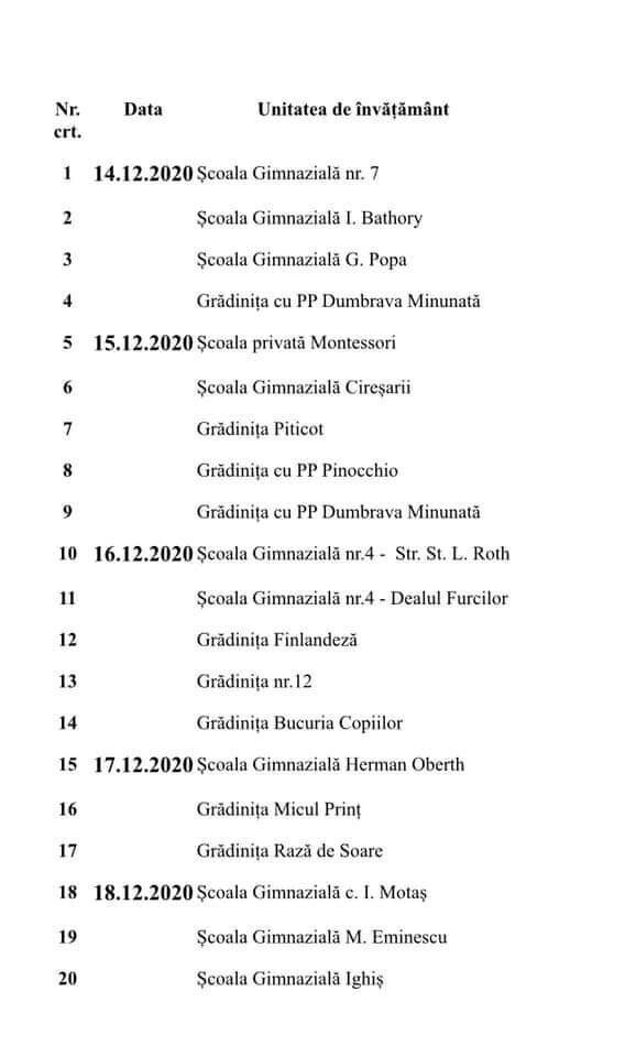 “ Am decis ca și în acest an, fiecare copil să se poată bucura de cadourile oferite de administrația publică locală cu ocazia sărbătorii de Crăciun. Pentru a respecta toate normele sanitare impuse, copiii nu vor mai veni sa colinde la sediul Primarie, ci vor fi așteptați de cadrele didactice și de către Moș Crăciun în curtea Unităților de Învățământ unde sunt înscriși, conform unui program agreat. Mulțumesc Romgaz, Transgaz, Kromberg& Schubert și Raiffeisen Bank pentru sumele cu care au susținut acest eveniment. “ a declarat Roman Gheorghe , primarul municipiului Mediaș