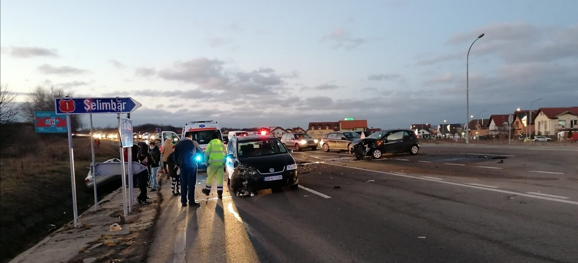 Trei mașini au intrat cu puțin timp în urmă în coliziune pe DN1, intersecție cu localitatea Șelimbăr.