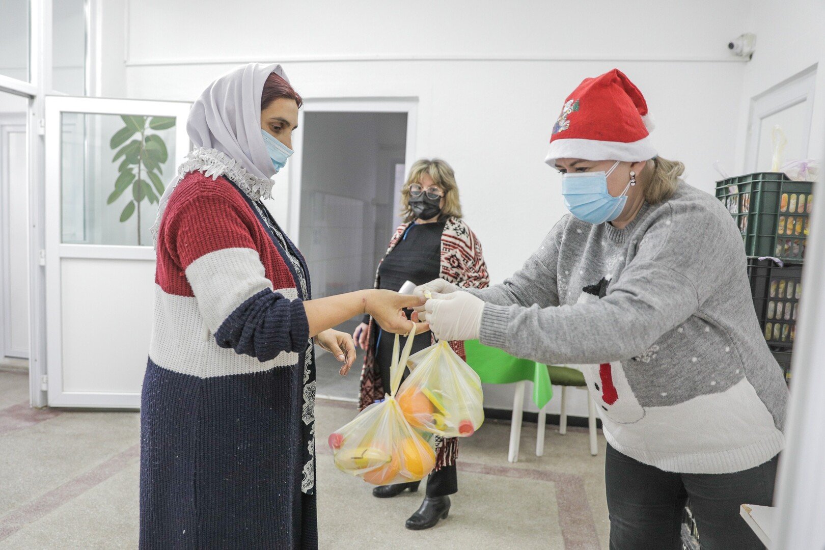 La Adăpostul de noapte, cei care beneficiază de serviciile acestei unității primesc zilnic, pe toată perioada sărbătorilor de iarnă, pachete și hrană la caserolă.