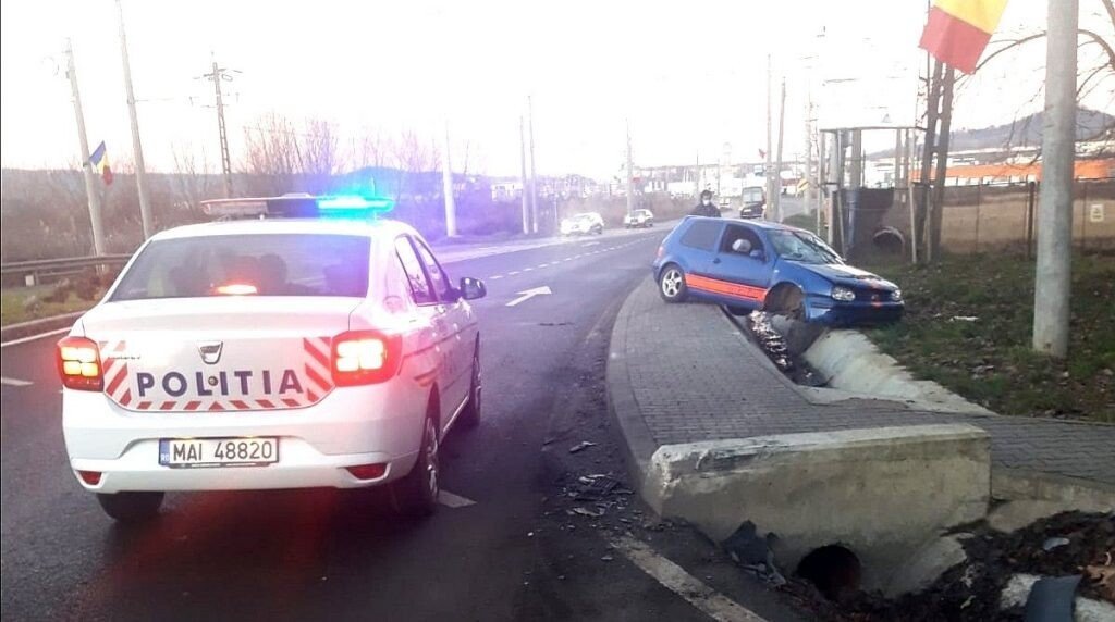 Un șofer băut a condus o mașină dinspre Copsa Mica spre Mediaș, iar din cauza neatenției și a alcoolului, acesta a pierdut controlul volanului și a intrat în coliziune cu un cap de pod.