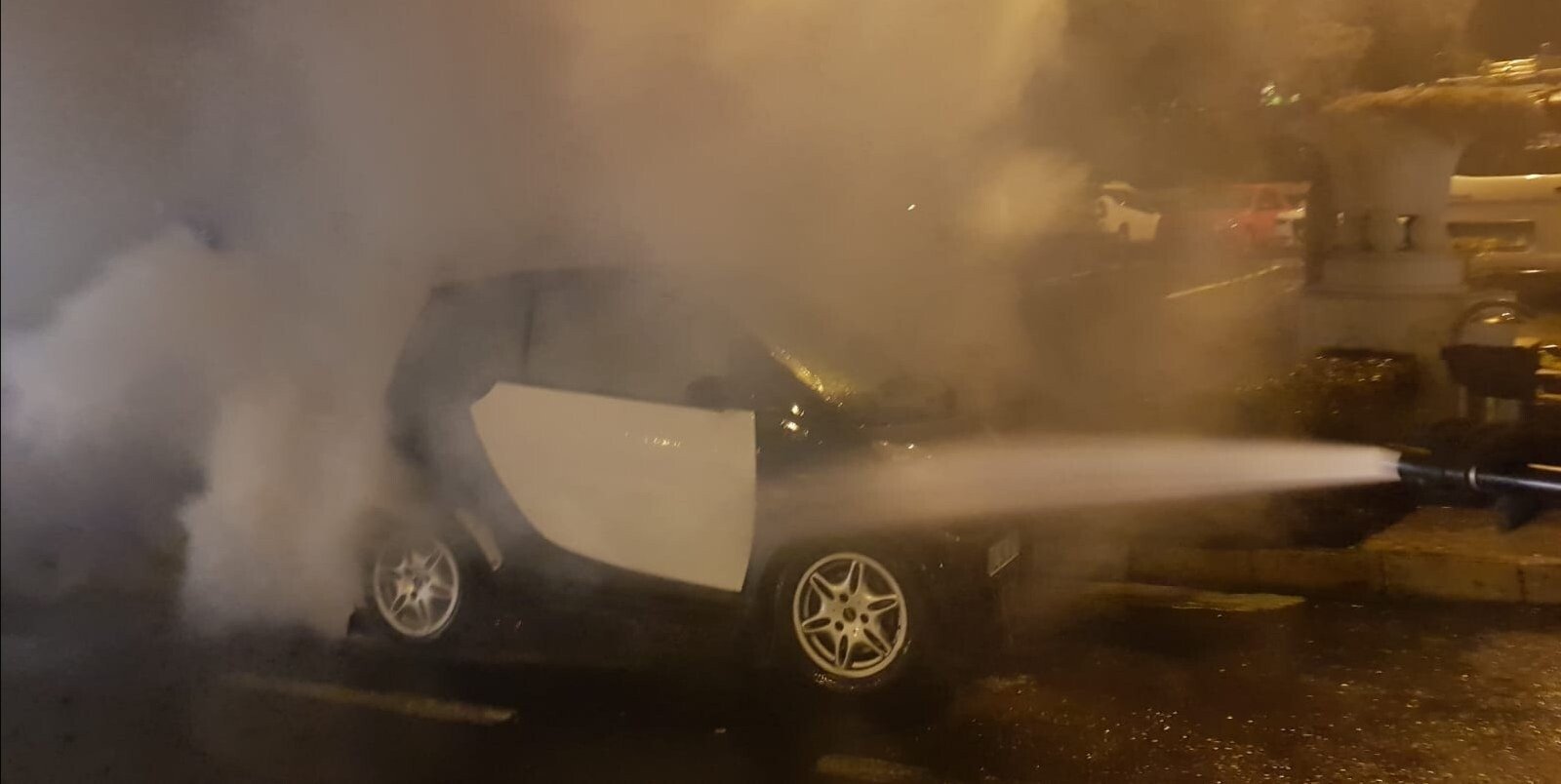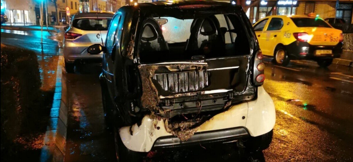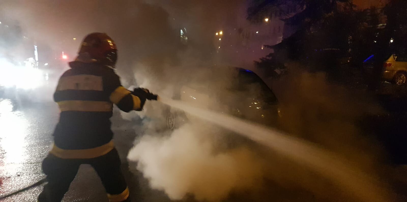FOTO: Mașină în flăcări pe bulevardul Nicolae Bălcescu din Sibiu