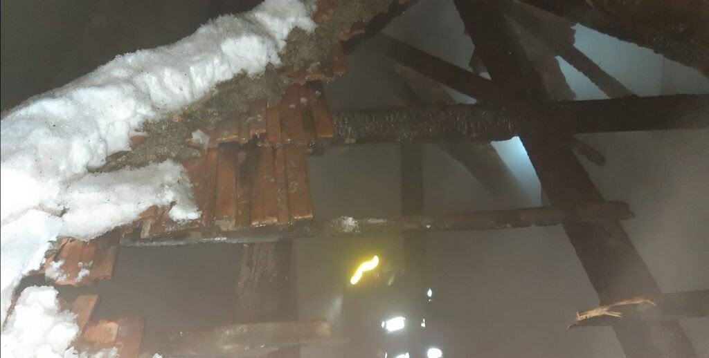 A ars acoperișul casei pe o suprafață de aproximativ 100 mp și s-au deteriorat interioarele camerelor.