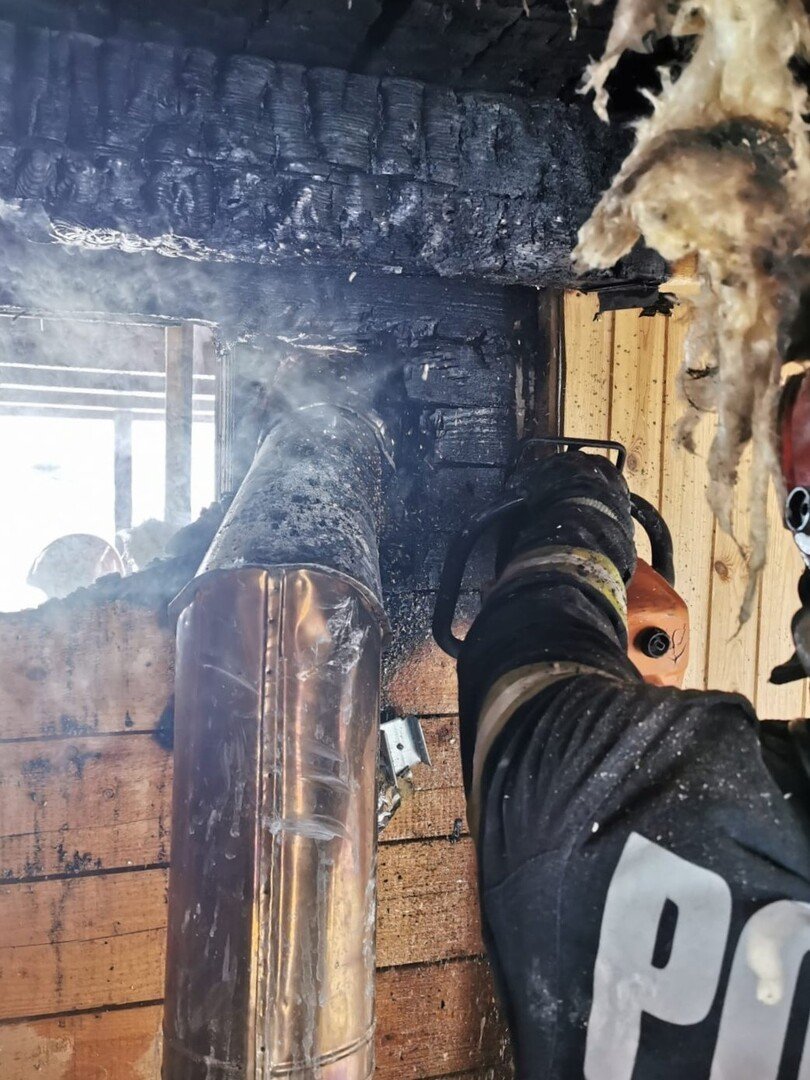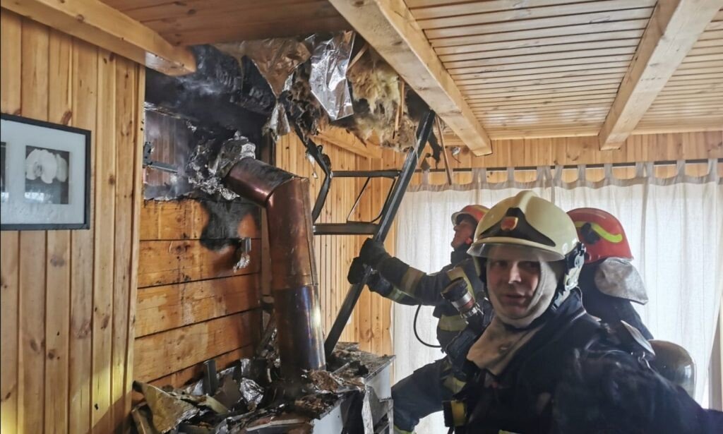 Au ars cca 6 mp din peretele din lemn al șemineului și o suprafață mică din acoperiș în jurul hornului.