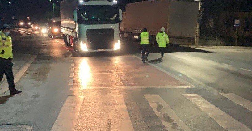 Polițiștii Serviciului Rutier prezenți la fața locului efectuează cercetări pentru a stabili cu exactitate împrejurările în care o femeie în vârstă de 50 de ani din Tălmaciu a fost accidentată ușor un camion condus spre Vâlcea, de către un bărbat în vârsta de 45 de ani, domiciliat în Pitești.