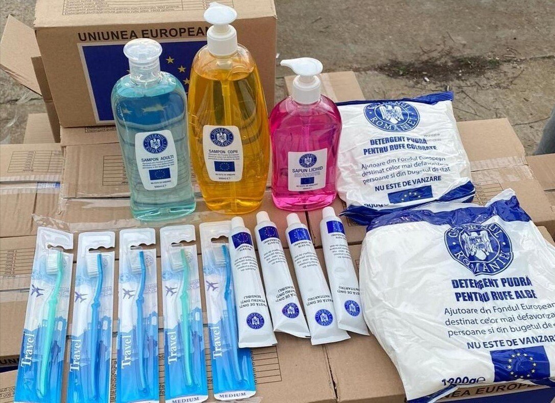 Reamintim că pachetele sunt acordate prin proiectul cofinanțat din Fondul de Ajutor European, cântăresc 5 kg fiecare și conțin: periuță de dinți – 5 buc., pastă de dinți -300 ml, săpun lichid – 500 ml, șampon copii – 800 ml, șampon adulți – 500 ml, detergent de rufe – 2700 gr.