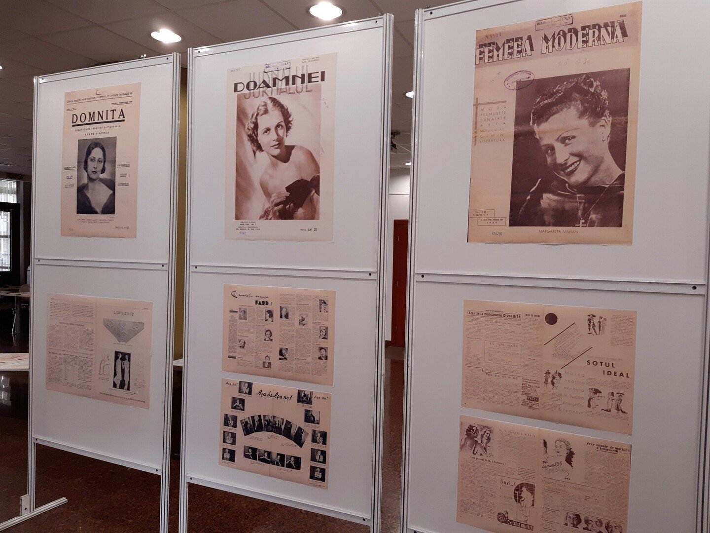 Călătoria pe care o propunem începe în prima parte a secolului XX. Regăsim printre exponate imagini din periodicele „Femeia și Familia” (1903), „Revista scriitoarei” (1905), „Viitorul româncelor” (1914), „Domnița” (1929), „Tribuna Femeii” (1930), „Cuvântul femeilor” (1933), „Femeia satelor” (1935), „Jurnalul Doamnei” (1938), „Femeia Modernă” (1938), lucrări tipărite și documente audio-vizuale. Consultând documentele expuse, privitorul va regăsi numeroase articole legate de preocuparea femeilor pentru frumusețe, sănătate, educație, cultură, emancipare și viață domestică.