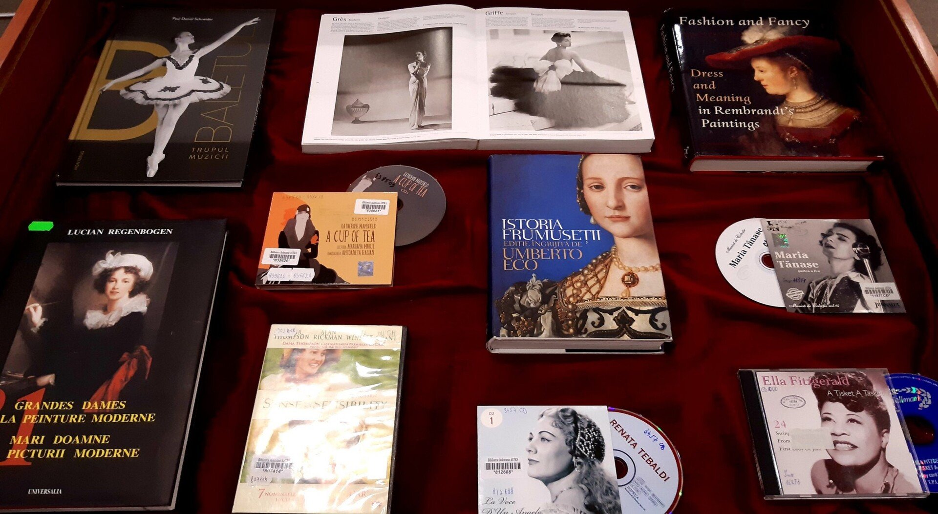 Sunt incluse lucrări din colecțiile compartimentelor Împrumut Carte pentru Adulți și Arte, de remarcat fiind: „Istoria frumuseții”, lucrarea cunoscutului semiotician italian, Umberto Eco, „Frumusețea ca senzație fizică” de Jorge Luis Borges, „Feminitatea în artă” de Marcel Barrière, „Fashion and Fancy. Dress and Meaning in Rembrandt’s Paintings”, „Frumusețea în rețete”, „Moda. Istoria completă”, „Biblia sănătății femeii ”și „Baletul. Trupul muzicii”.