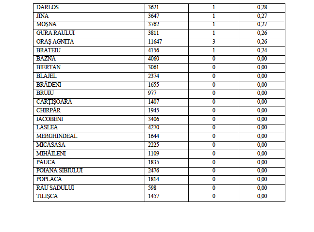 La ora 08:00 erau spitalizate un număr de 249 de persoane, dintre care pe ATI 29 adulți. La nivelul județului Sibiu în ultimele 24 de ore s-au efectuat 571 de teste.