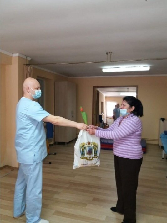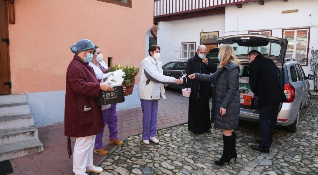 Întrucât măsurile de siguranţă sanitară nu au permis accesul delegaţiei eparhiale în centrele de vârstnici din Sibiu, darurile au fost împărţite prin intermediul personalului medical şi de îngrijire