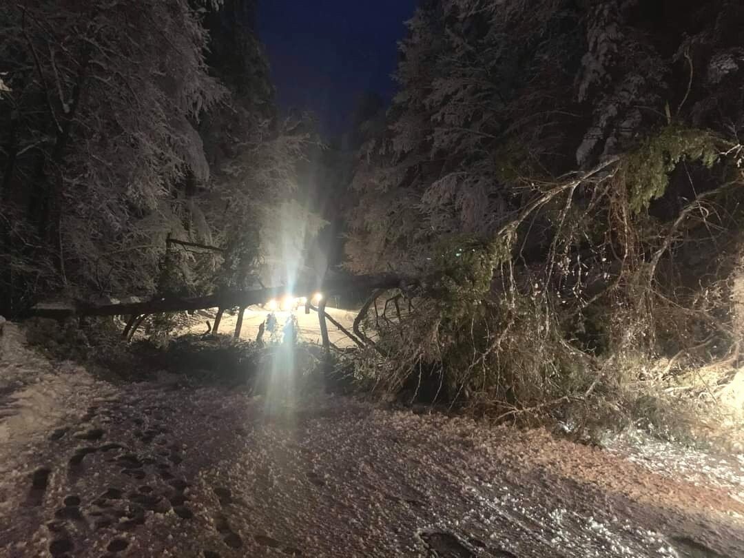 FOTO: Trafic blocat spre Păltiniș din cauza unui copac căzut pe carosabil