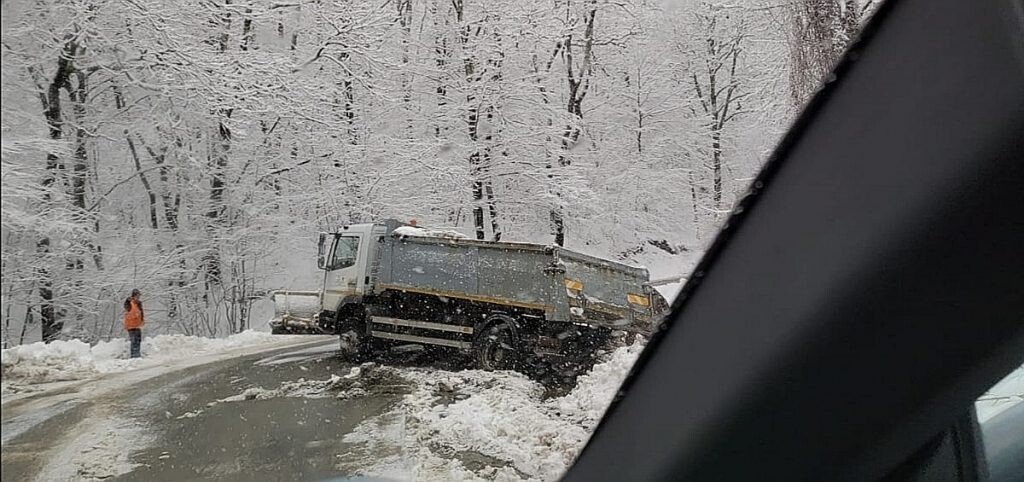 Un utilaj de deszăpezire aparținând firmei Drumuri şi Poduri S.A Sibiu a derapat în această dimineață pe drumul spre Cisnădioara. În urma incidentului rutier, traficul rutier a fost blocat total pentru repunerea autocamionului pe partea carosabilă.