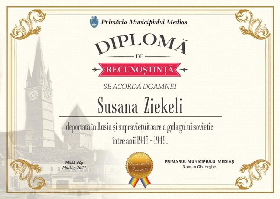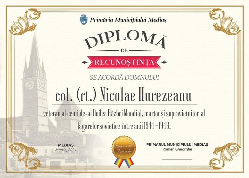 Primarul municipiului Mediaș, Gheorghe Roman împreună cu istoricul Dan Ramf și reprezentanți ai Unității Militare 01810 și ai Asociației Naționale a Veteranilor de Război filiala Sibiu i-au vizitat și premiat pe veteranii de război Nicolae Hurezeanu și Susana Zikeli.