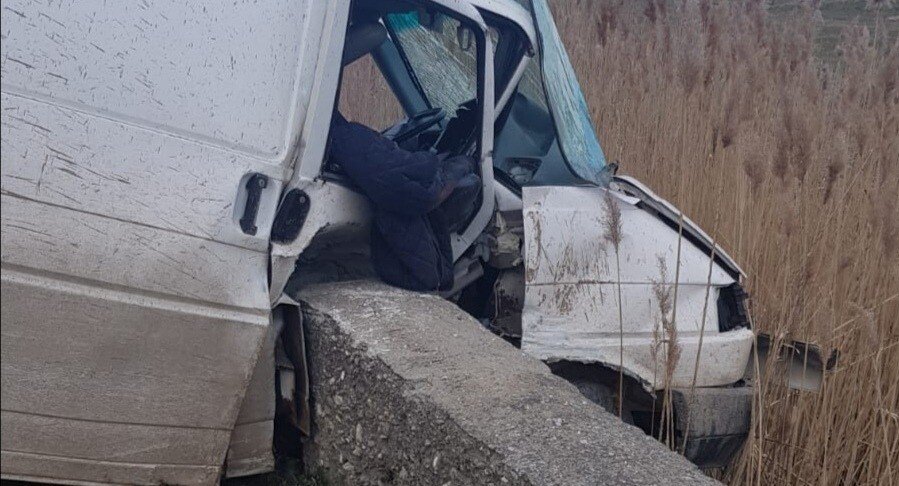 Șoferul unui microbuz ce circula pe DJ 105G, pe fondul neatenției în conducere, a pierdut controlul direcției de deplasare, a pătruns pe contrasens și a intrat în coliziune cu un cap de pod de pe partea stânga a sensului de mers.