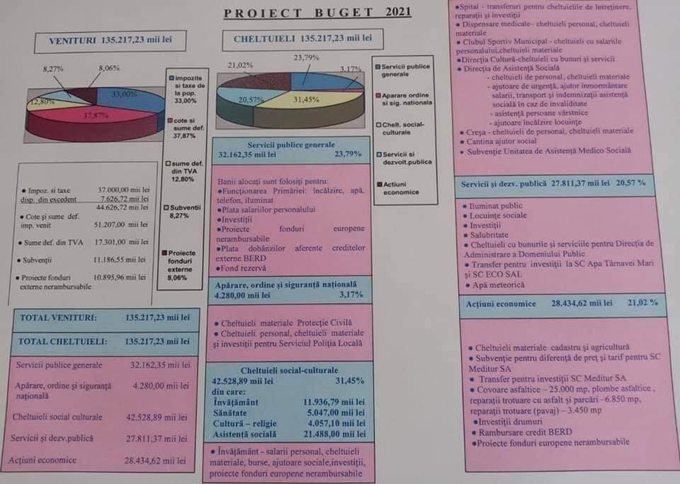 „Am avut ieri în sala mare a primăriei o dezbatere pe bugetul orașului pe anul 2021. Bugetul estimat pentru acest an este de aproximativ 130 milioane lei, care va fi împărțit astfel: