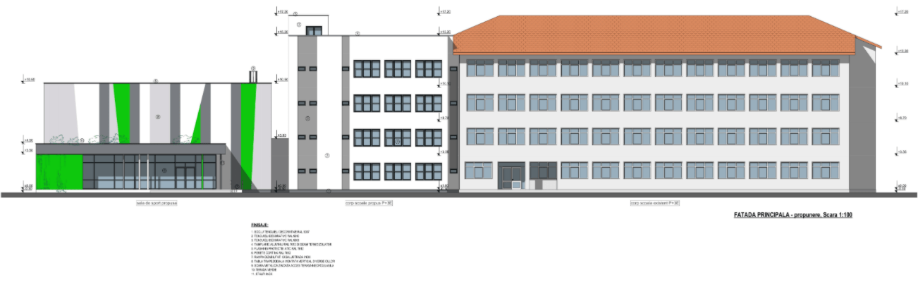 Clădirea existentă a școlii se va extinde cu un corp nou, cu parter și 3 etaje. În acesta se vor crea încă 5 săli de clasă, un laborator de chimie și unul de fizică, o bibliotecă cu sală de lectură și grupuri sanitare. Școala va câștiga astfel o suprafață suplimentară de peste 1.100 mp. Noua clădire va avea și componente smart: pe acoperișul acesteia se vor instala panouri fotovoltaice care vor acoperi peste 70% din necesarul de energie termică pentru producerea apei calde. De asemenea, iluminatul în clădire va fi de tip LED, eficient energetic.