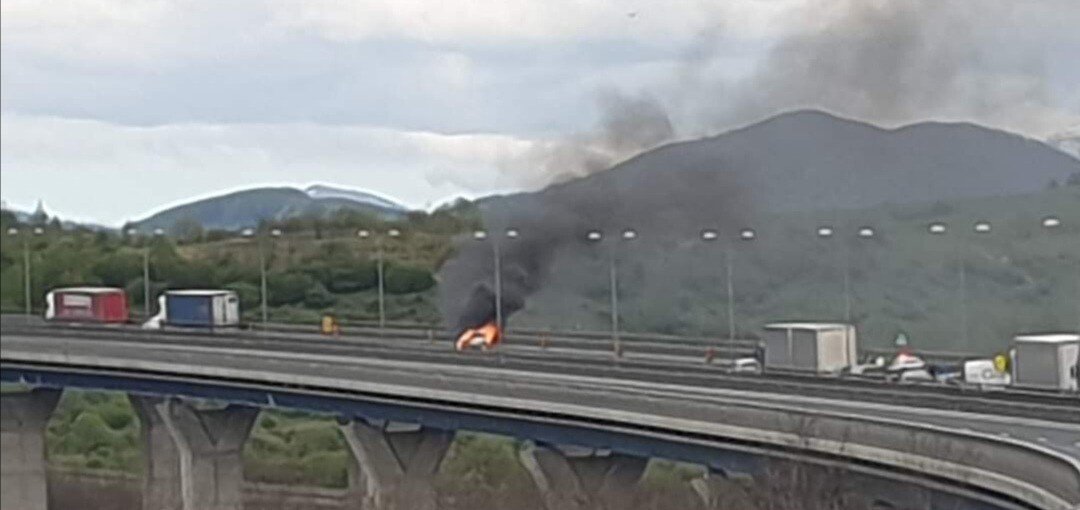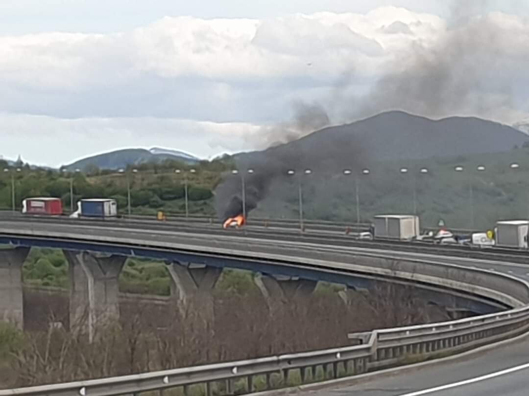 Incendiu pe autostrada A1 – Mașina a fost distrusă în totalitate