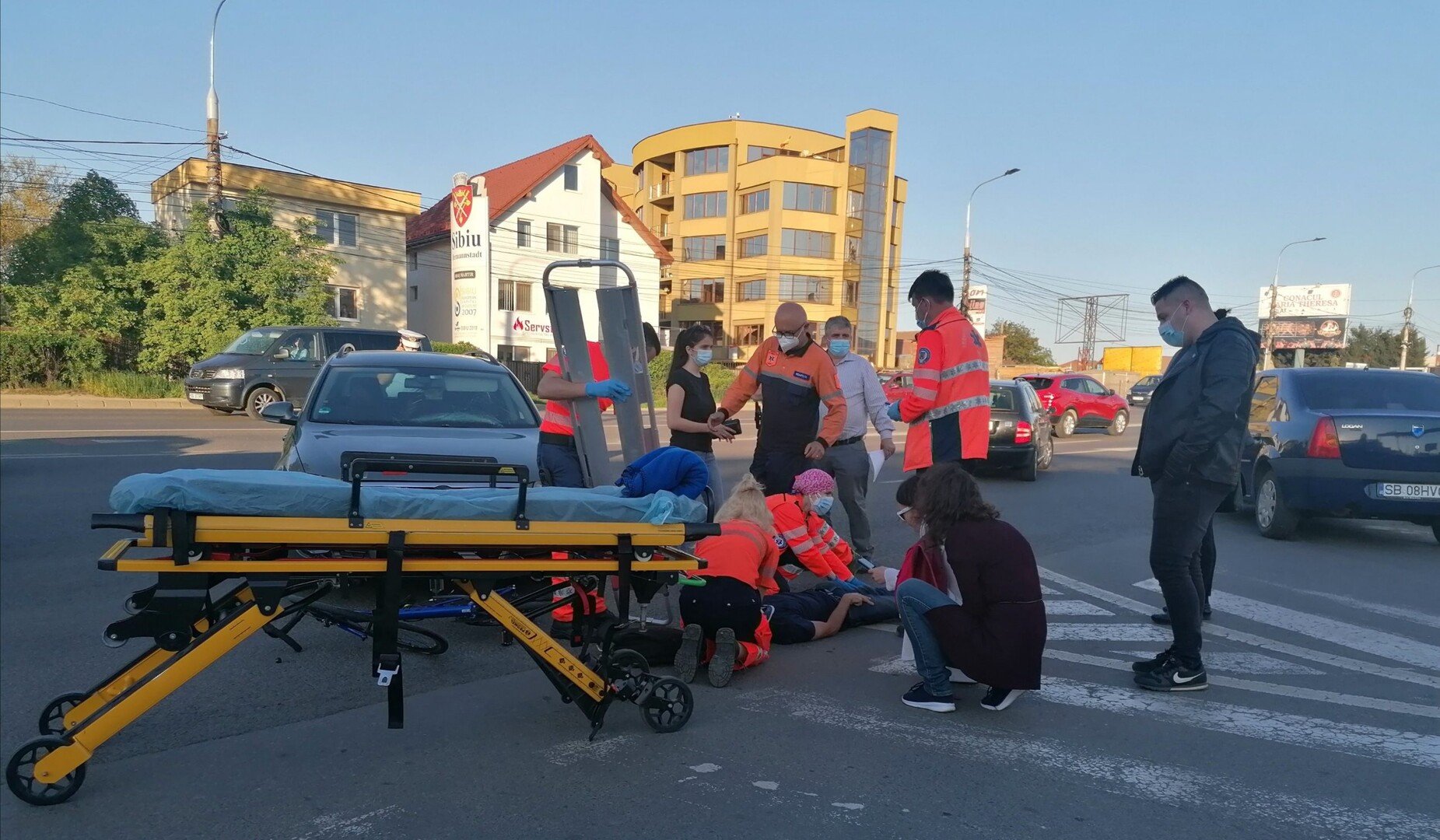 Un biciclist a fost lovit cu puțin timp în urmă de o mașină condusă de un sibian neatent.