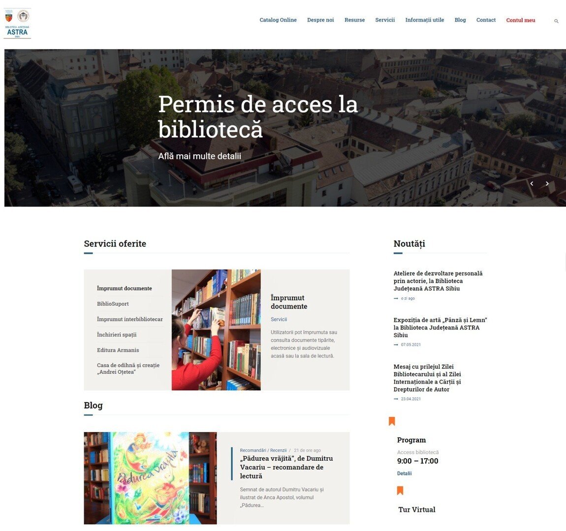 Pe parcursul ultimelor luni, Biblioteca Județeană ASTRA Sibiu a derulat o frumoasă colaborare cu ROPARDO S.R.L. în vederea realizării unei interfețe digitale moderne, care oferă publicului interesat de servicii de bibliotecă o experiență de navigare online mai prietenoasă. Lansat de curând, noul website răspunde nevoilor utilizatorilor, permițând accesarea meniurilor și secțiunilor într-un mod facil și intuitiv. Site-ul oferă sincronizare pe orice tip de dispozitiv conectat la Internet: desktop, laptop, tabletă, smartphone.