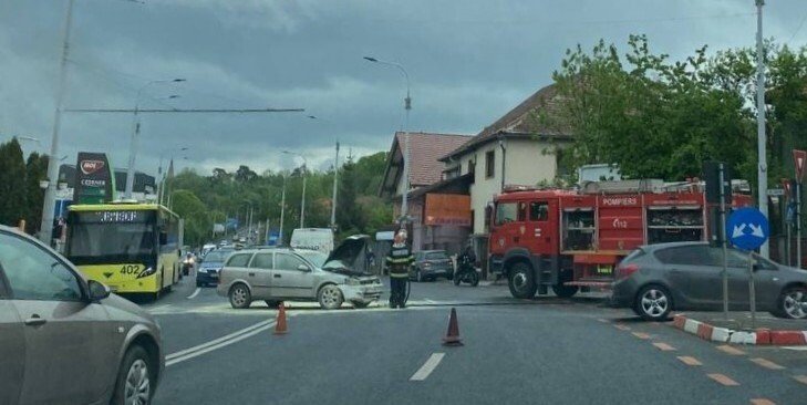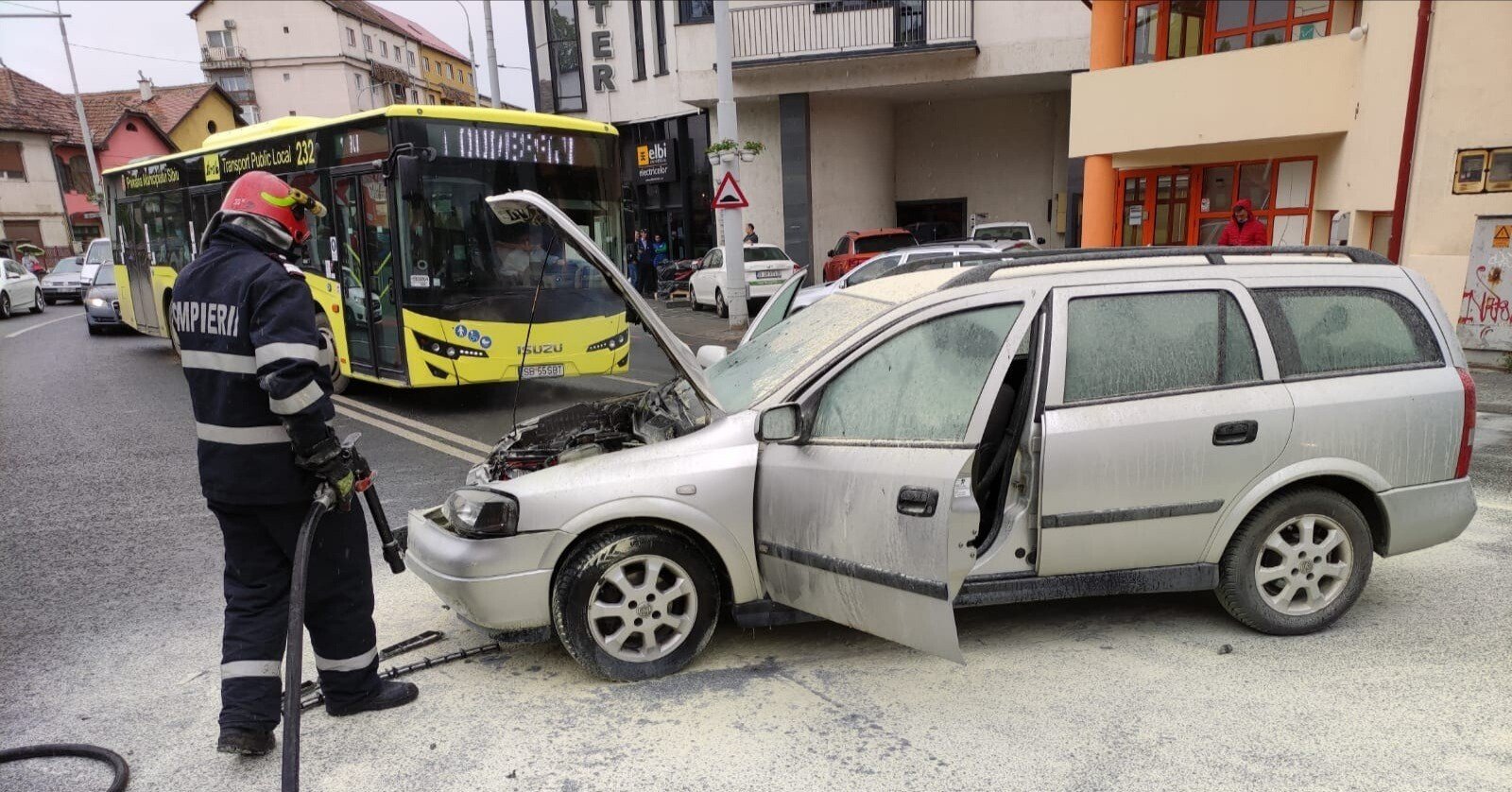 Pompierii militari ai Detașamentului Sibiu au fost solicitați să intervină de urgență în municipiul Sibiu, str. Vasile Carlova colț cu str. Alba Iulia pentru lichidarea unui incendiu izbucnit la un autoturism ca urmare a unui eveniment rutier.