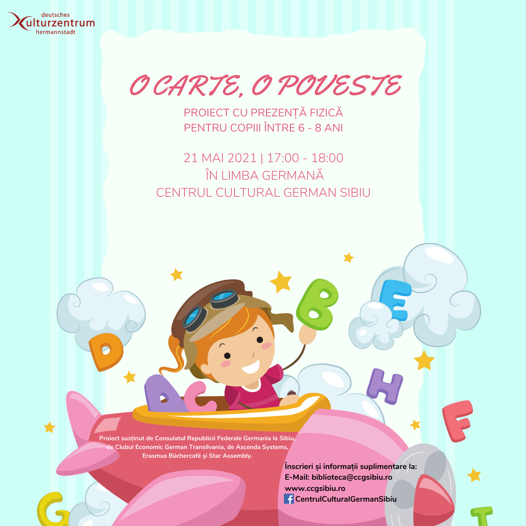 Centrul Cultural German Sibiu vă invită cu drag în data de 21 mai 2021 de la ora 17:00 la următoarea întâlnire din cadrul proiectului pentru copii O carte, o poveste. De această dată bibliotecara noastră Roxana Stoenescu vă așteaptă cu o poveste neobișnuită despre un cocoș ambițios, precum și cu activități distractive.Cocoșul Heinrich trebuie să exerseze în fiecare zi să cânte pentru a putea să-i ia locul tatălui său în viitor atunci când va fi mai mare și să aibă grijă de găinile din ogradă. Însă pe Heinrich îl fascinează cel mai mult clocitul ouălor, lucru de care se ocupă mama sa și celelalte găini. De ce ar fi clocitul ouălor doar o îndeletnicire potrivită pentru găini? Cocoșul Heinrich este hotărât să schimbe acest lucru. Cum își va îndeplini visul cocoșul îndrăzneț vom afla împreună ascultând povestea în cadrul întâlnirii la Centrul Cultural German Sibiu.