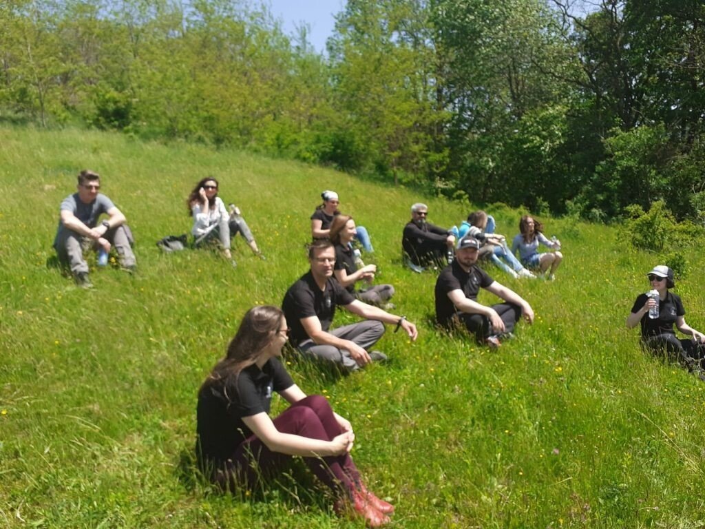 Grupul de jurnalişti care au răspuns provocării organizatorilor au fost însoţiţi pe tot traseul de Daniela Cîmpean, Adrian Bibu şi Sergiu Olteanu, alături de alţi membrii ai echipei de proiect. Un punct interesant pe traseu a fost meditaţia naturii. Pe un tăpşan mai sus de o micro-fermă de vaci, la limita dintre localităţile Răşinari şi Cisnădioara, ghidul nostru ne-a invitat să ne aşezăm pe iarbă şi să luăm o plantă din jur şi să ne bucurăm de natură în linişte câteva minute. Să simţim vântul care bătea şi făcea soarele să nu pară aşa puternic, alături de zumsetul insectelor şi ciripitul păsărilor din pădurea învecinată.