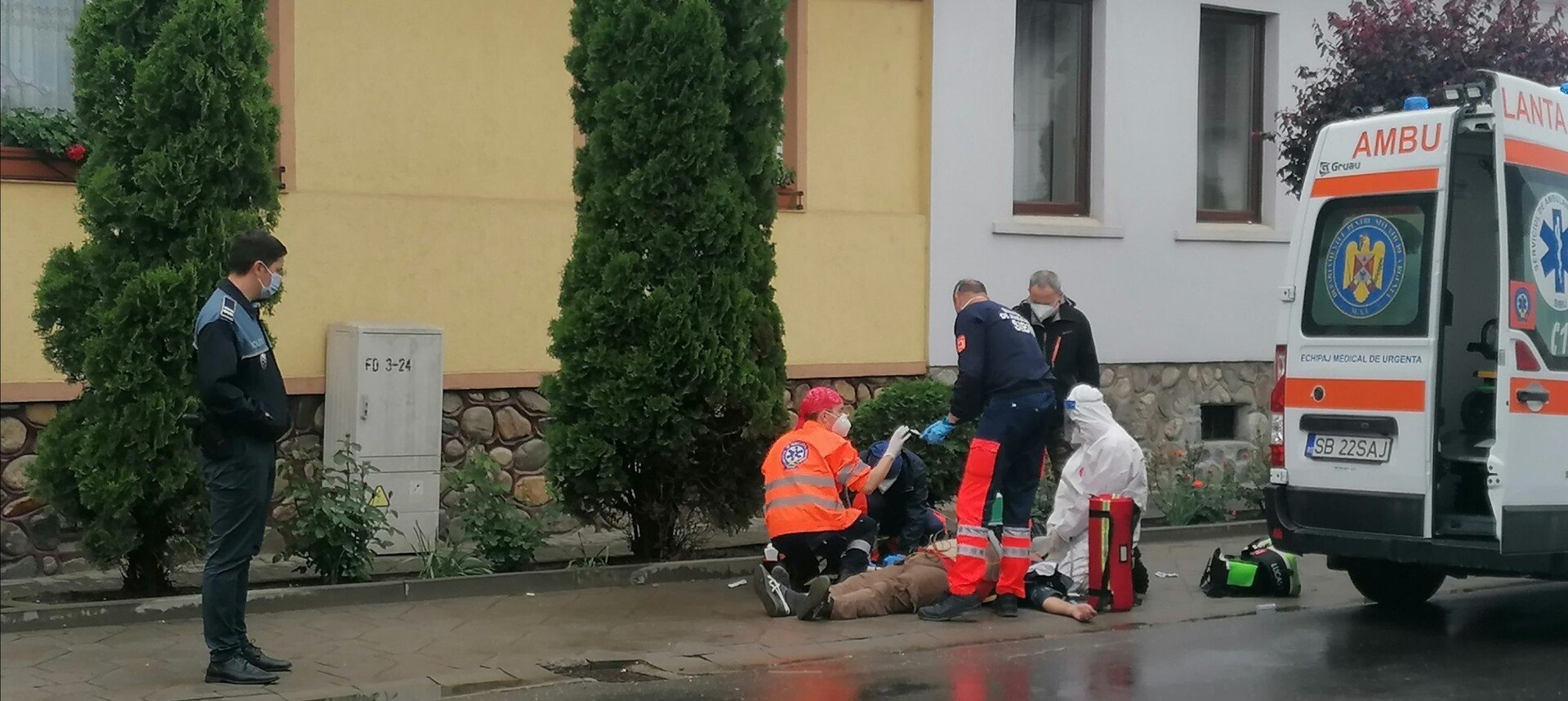 Mai multe echipaje de poliție, dar și un echipaj SAJ au ajuns extrem de rapid la bărbatul aflat deja în stop cardio-respirator. Medicii au început de urgență manevrele de resuscitare iar într-un final, bărbatul a prezentat puls, fiind transportat la spital.