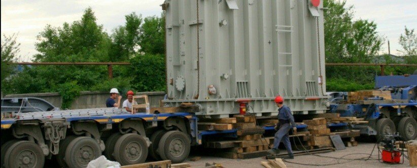 Vehiculul transportă un transformator.