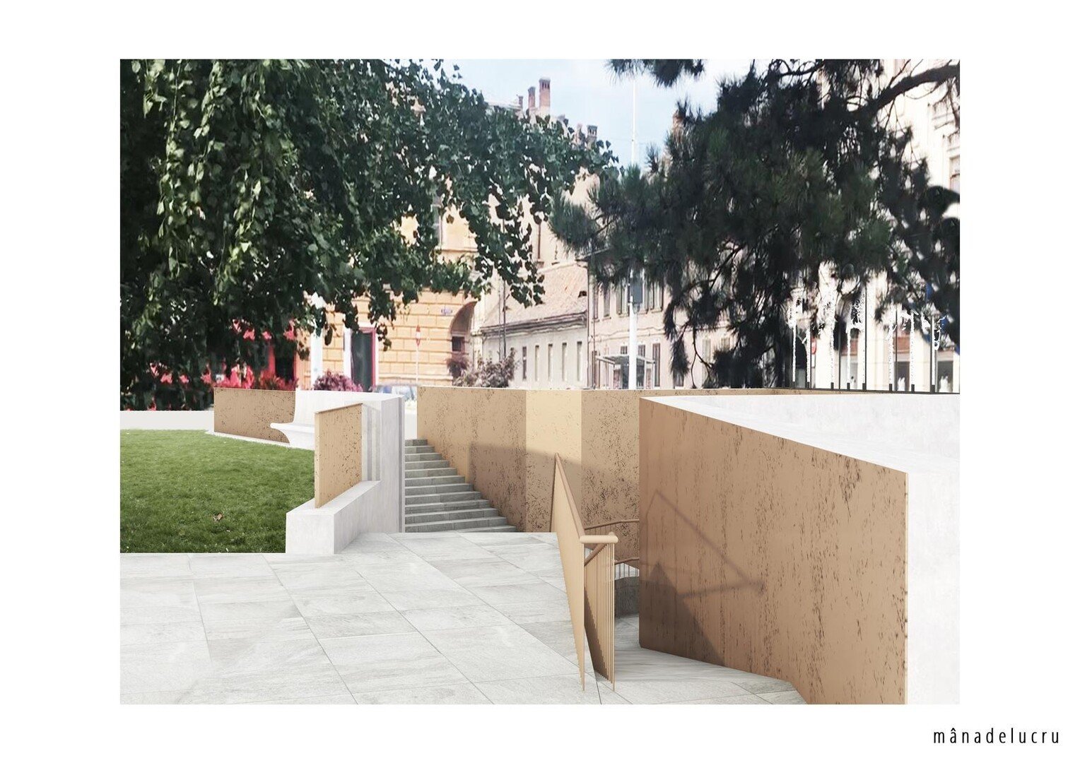 - Refacerea trotuarelor și a spațiilor verzi din zona pasajului