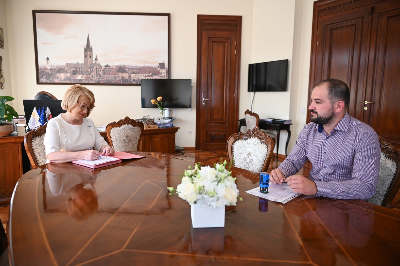 “Modernizăm pasajul pietonal subteran care traversează str. A. Șaguna. Nu este o simplă lucrare de cosmetizare, ci refacem parte din structura pasajului, utilitățile și îl transformăm într-un spațiu de informare pentru sibieni, prin instalarea unor ecrane smart. Valoarea investiției se ridică la 2,8 milioane de lei.” (Astrid Fodor, primarul municipiului Sibiu)
