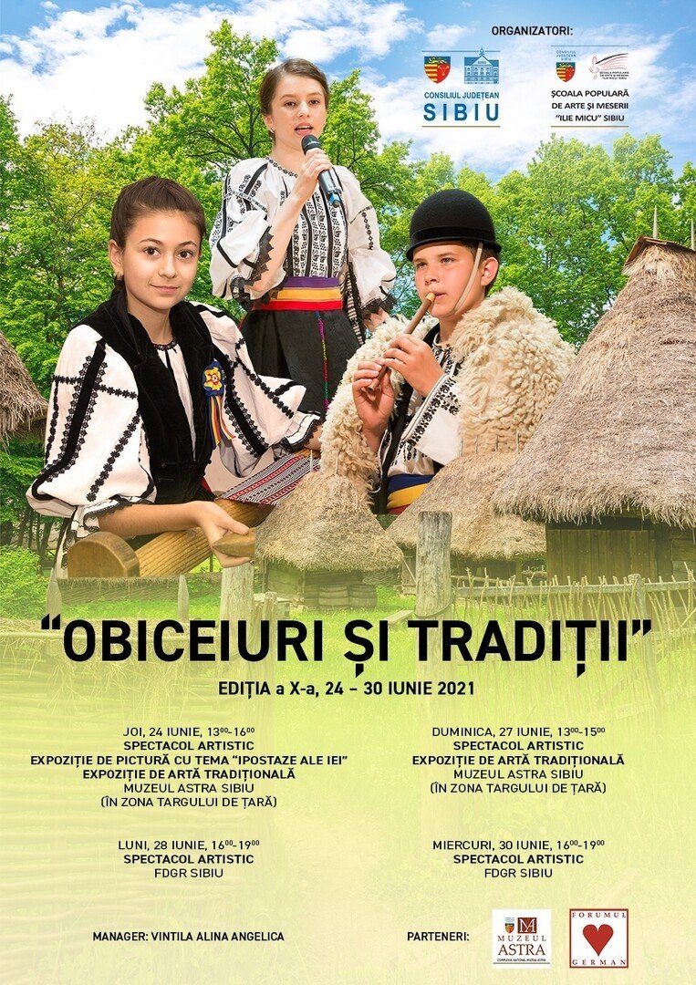 Scoala Populară De Arte Și Meserii ILIE MICU Sibiu desfășoară în perioada 24 iunie-30 iunie 2021 Festivalul ,, OBICEIURI SI TRADITII ”-ediția cu numarul X.