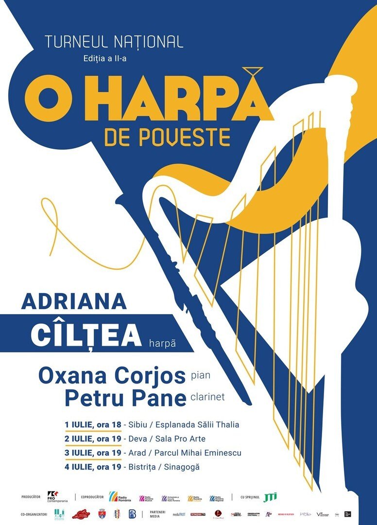 Pe 1 iulie, pe Esplanada Sălii Thalia din Sibiu, în aer liber, 2 iulie, la Sala Pro arte a Colegiului Naţional “Decebal” din Deva, 3 iulie, în Parcul “Mihai Eminescu” din Arad, în aer liber şi 4 iulie la Sinagoga din Bistriţa vor avea loc patru recitaluri, avându-i ca protagonişti pe Adriana Cîlţea – harpă, Petru Pane – clarinet, Oxana Corjos – pian. Programul va cuprinde lucrări diverse dedicate sau adaptate pentru această formula, de la Bach-Grandjany, până la Bela Kovacs.