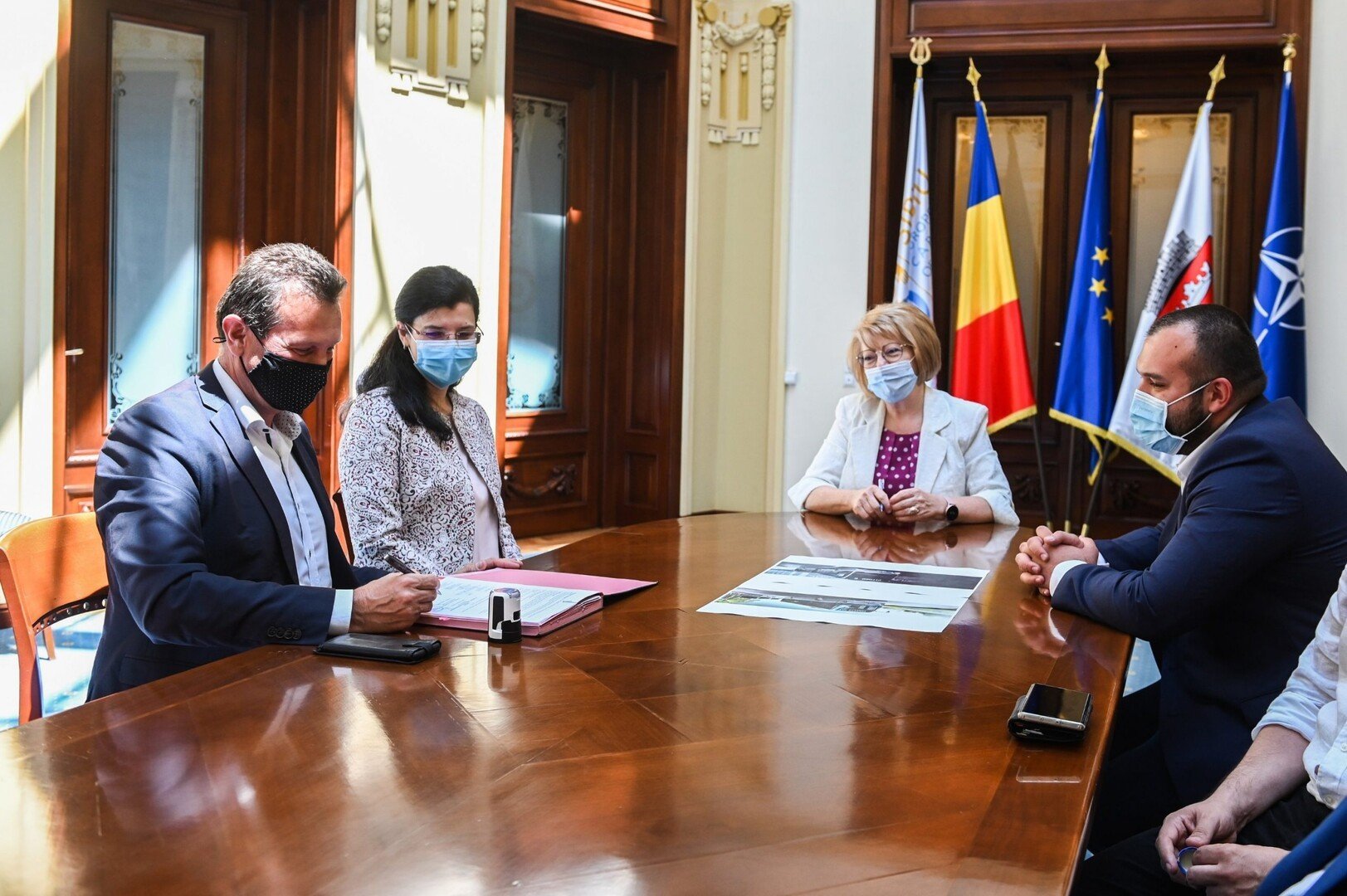 Primarul Astrid Fodor a semnat astăzi contractul pentru modernizarea transportului public din Sibiu cu firma Mercedes – Benz Trucks & Buses România, reprezentată prin Anca Teodora Popescu, administrator și domnul Bogdan Aldea, director de vânzări al firmei. Contractul s-a semnat în urma unei proceduri de achiziție în cadrul căreia au fost depuse 4 oferte.