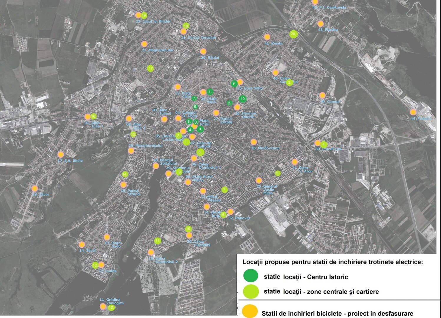 Locațiile de amplasare a stațiilor de trotinete electrice propuse de operatori vor fi analizate de asemenea în cadrul Comisiei de Circulație, locațiile orientative propuse de municipalitate fiind prezentate aici https://www.sibiu.ro/new/pdf/Trotinete 1.pdf. Vor fi admiși și vor primi aviz de operare pe domeniul public primii doi operatori, în ordinea punctajului obținut.