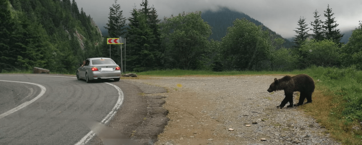 „Atenție! A fost semnalată prezența unui urs pe DN7C, km 126 pe raza UAT Cârtisoara.