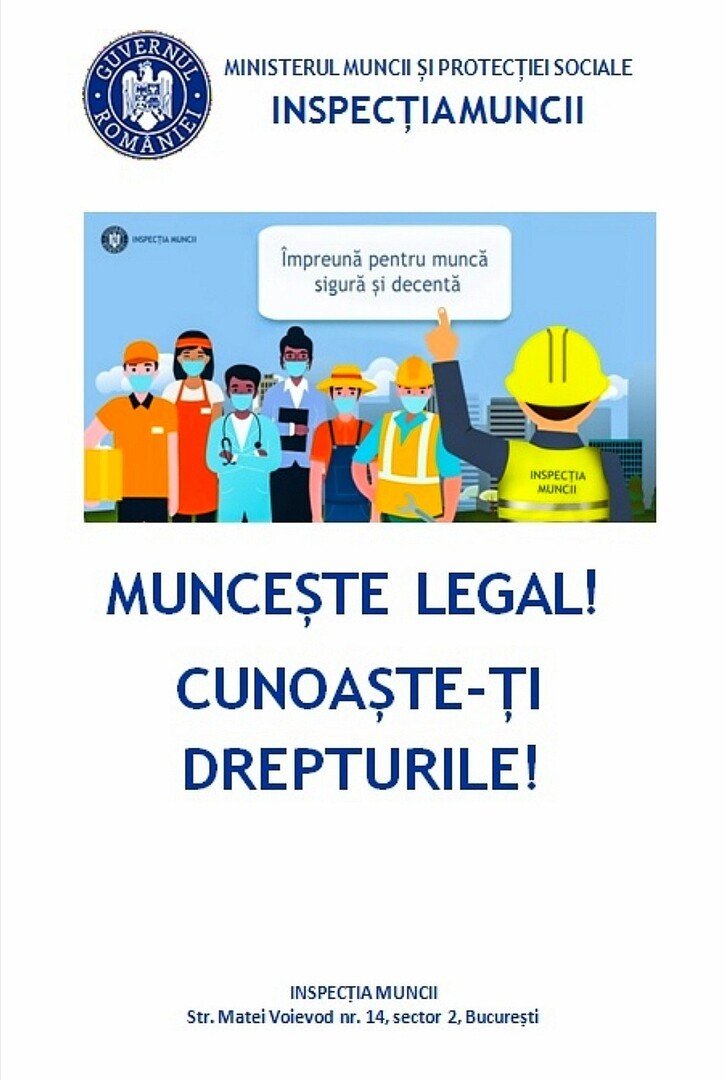 În perioada 08.07.2021 – 30 iulie 2021, în vederea creșterii gradului de conștientizare a lucrătorilor cu privire la consecințele sociale și economice negative pe care le produce munca nedeclarată și munca subdeclarată (munca ”la gri”), la drepturile și obligațiile pe care le au aceștia, precum și la riscurile la care se expun atunci când acceptă să muncească ”la negru” sau ”la gri”,  Inspectoratul Teritorial Sibiu, sub îndrumarea Inspecției Muncii, va desfășura acțiunea de informare ”MUNCEȘTE LEGAL!CUNOAȘTE-ȚI DREPTURILE”.