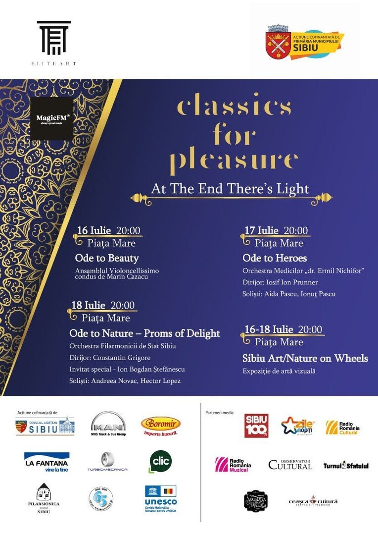În perioada 16 – 18 Iulie 2021 Elite Art Club UNESCO vă invită la Classics for Pleasure – At the End There’s Light. Un simbol cultural al Ardealului, festivalul îi așteaptă pe melomani cu 3 concerte de muzică clasică și o expoziție inedită. Anul acesta tema festivalului este una plină de optimism și speranță, o odă adusă frumuseții vieții.