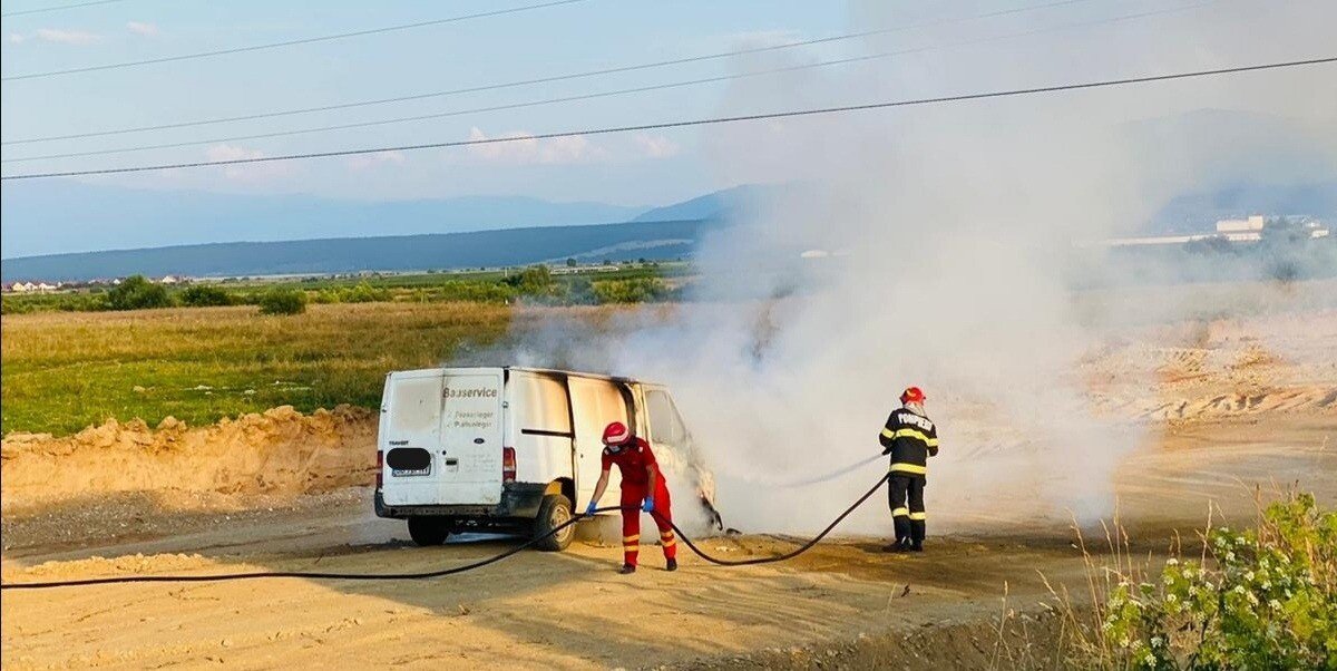 Un echipaj de pompieri militari și un echipaj SMURD din cadrul Detașamentului Sibiu au intervenit de urgență pe DN 1, Cristian pentru localizarea și lichidarea unui incendiu izbucnit la compartimentul motor al unui microbuz transport marfă.