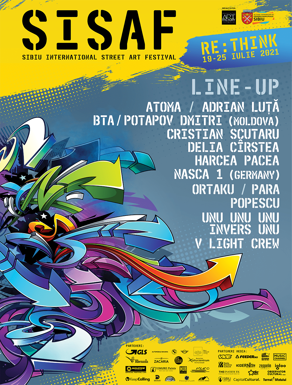 Sibiu International Street ART Festival este un eveniment organizat de Asociația ART Factory Transilvania și cofinanțat de Primăria Municipiului Sibiu.