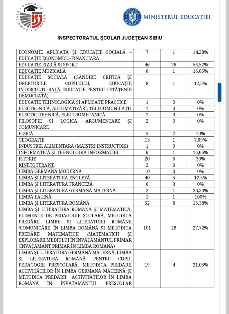 Astăzi, 28.07.2021, ora 12.00, la sediul I.Ș.J. Sibiu s-a finalizat etapa de depunere a contestațiilor la rezultatele obținute de candidații care au susținut examenul de Titularizare 2021. Notele obținute în urma soluționării acestor contestații sunt note finale, indiferent cu cât au fost mărite sau micșorate, conform OMEC 5259/2019.