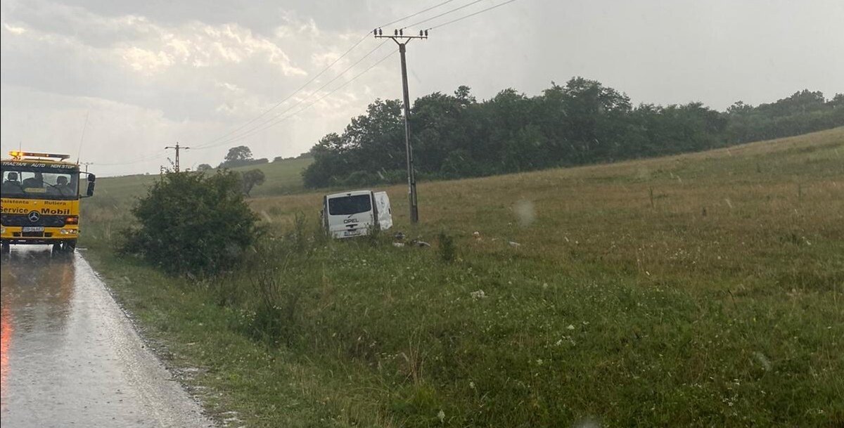 Din primele informații, șoferul unui microbuz transport marfă, condus spre Agnita, a pierdut controlul direcției de deplasare și a părăsit partea carosabilă, răsturnându-se în afara drumului.