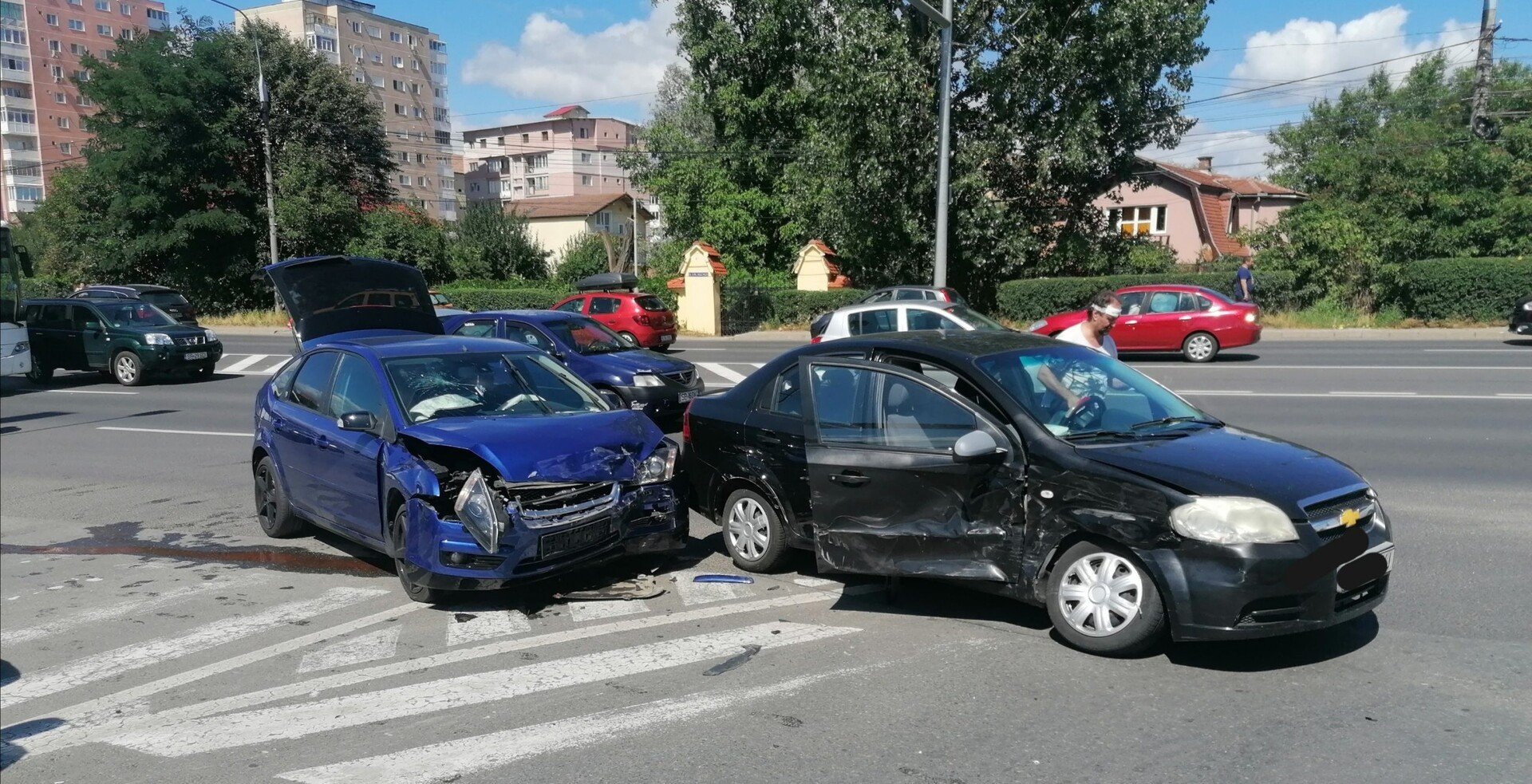 VIDEO-FOTO: Impact între două mașini pe DN1, în apropierea magazinului Kaufland Șelimbăr