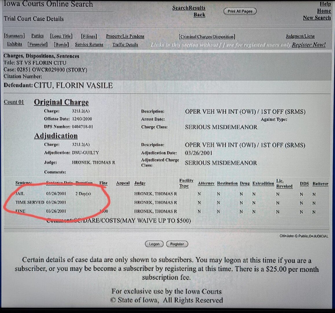 O condamnare penală cu închisoare, fie și pentru două zile, în SUA, nu poate fi contestată de nimeni. Documentele doveditoare sunt fără dubiu și sunt publice, pe site-ul Curții statului Iowa. În aceste documente, se specifică faptul că infracțiunea comisă de Cîțu se încadrează la categoria faptelor periculoase.