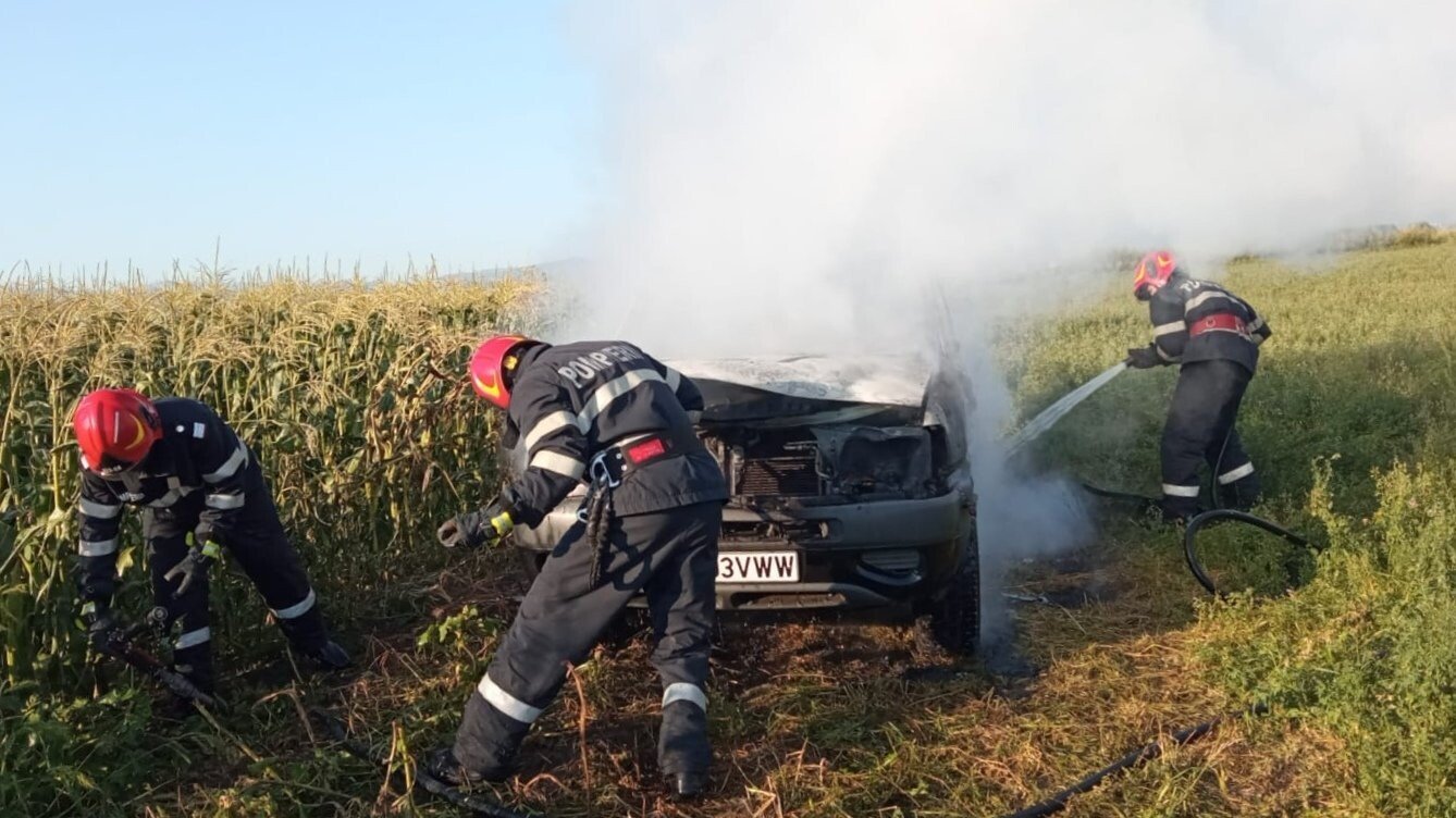 La sosirea forțelor incendiul se manifesta generalizat la întreg autoturismul cu posibilitate de extindere la cultura agricolă.