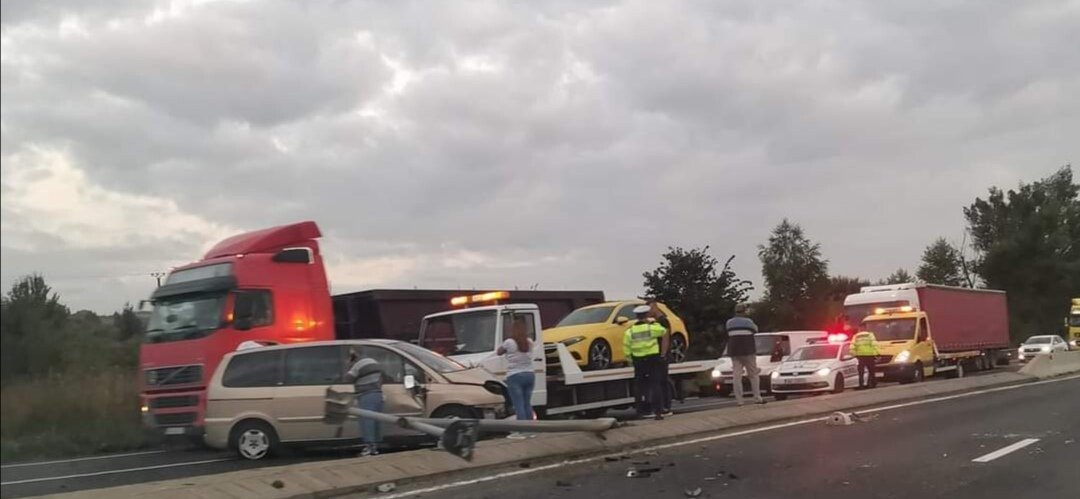 Din primele cercetări, pe fondul neasigurării de către șoferul platformei la schimbarea benzii de mers, a lovit autoturismul care circula pe banda 1, pe același sens. Mașina a fost proiectată într-un stâlp care a căzut pe carosabil, ocupând banda 2 de deplasare a ambelor sensuri de mers.