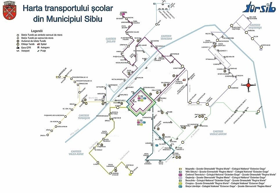 Primăria Sibiu și societatea de transport Tursib propun, spre aprobarea Consiliului Local Sibiu, primele 7 trasee pilot pentru transportul elevilor în municipiului Sibiu.