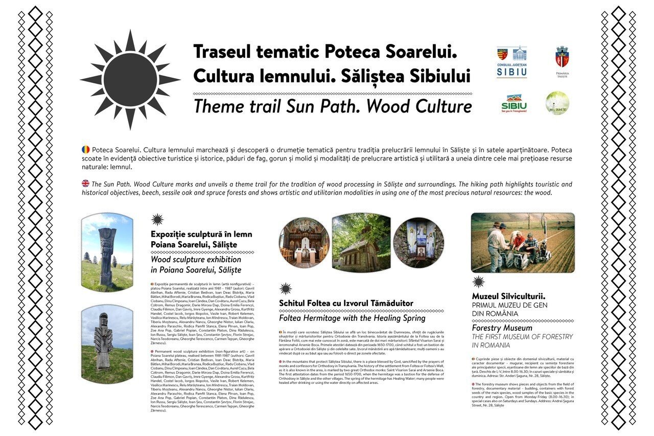 Poteca Soarelui. Cultura lemnului marchează și descoperă un traseu itinerant și o drumeție tematică pentru tradiția prelucrării lemnului în Săliște și satele aparținătoare, pornind de la prelucrarea lui artizanală și utilitară până la folosirea acestuia în cea mai valoroasă expoziție artistică non figurativă de sculptură în lemn din țară, realizată între anii 1981-1987, în Poiana Soarelui (Șanta Crucii), în Săliște. Proiectul este organizat și implementat de Primăria Săliște, în parteneriat cu Asociația Județeană de Turism Sibiu, co-finanțat de Consiliul Județean Sibiu și face parte din cadrul Programului Anii Drumeției.