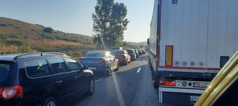 Traficul este blocat pe sensul Cristian – Sibiu, formându-se coloane mari de mașini.