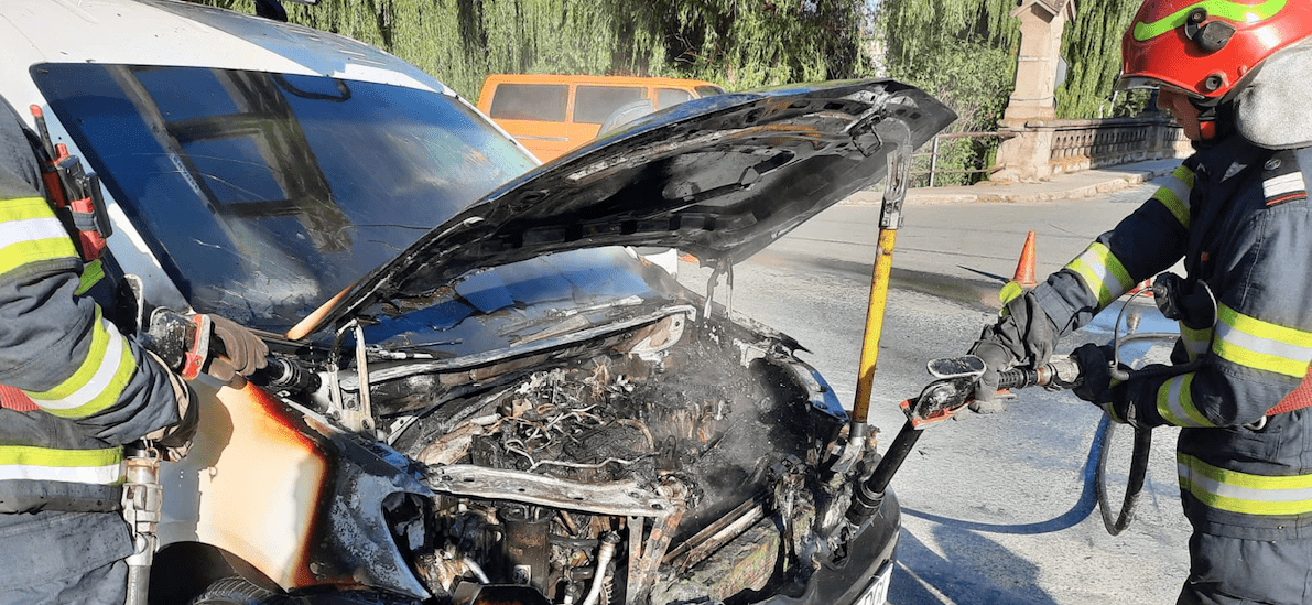 Pentru limitarea și lichidarea unui incendiu izbucnit la compartimentul motor al unui autoturism situat pe strada Râului din Sibiu, pompierii militari sibieni au intervenit de urgență cu două autospeciale.