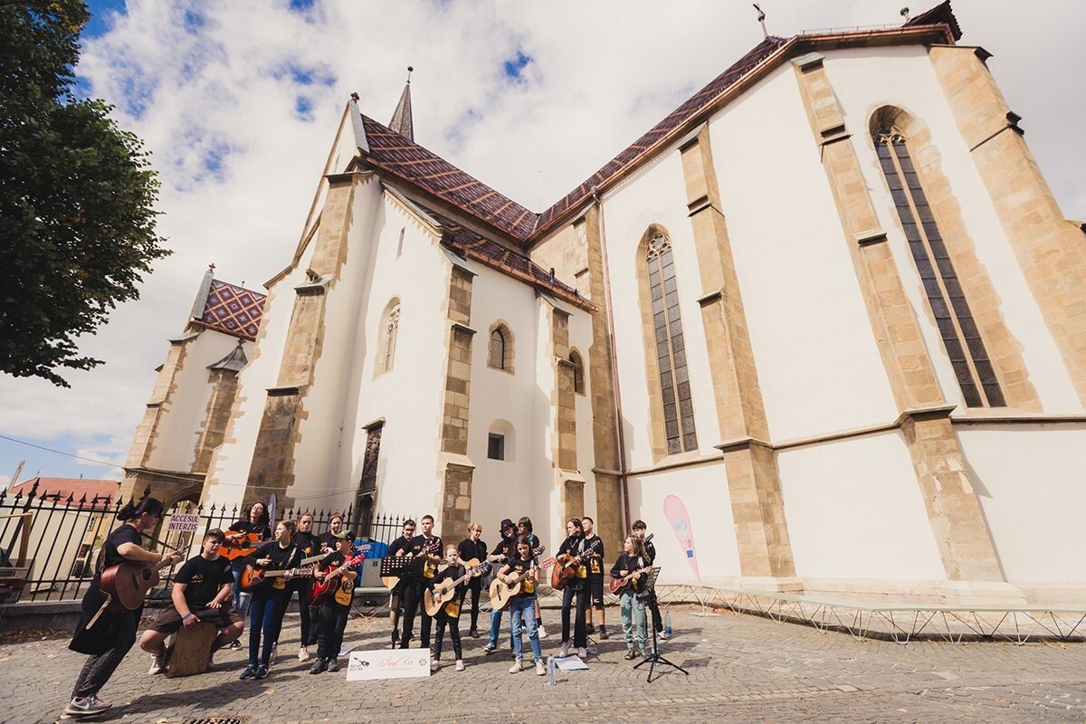În weekend s-a desfășurat la Muzeul Astra din Sibiu cea mai mare întâlnire a chitariștilor români – Guitar Meeting, ediția a VII-a. În cadrul Concertului Manifest, care a avut loc sâmbătă, 18 septembrie, au cântat în zona scenei de pe lac 475 de chitariști veniți la Sibiu din 28 de orașe din România, special pentru acest moment unic.